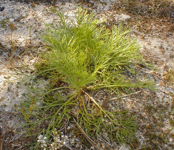 This is a biennial which forms rosettes of basal leaves in the first year and blooms in the second year of growth when it forms a long panicle of inconspicuous flowers. This species is found near sandy beaches as it is in City Park This species can occasionally be found in sandy waste places.