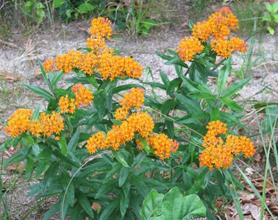 Butterfly Weed is different from other species of Milkweed in that it has alternate leaves, no milky latex and orange flowers. It grows two to three feet tall and starts blooming in July.
