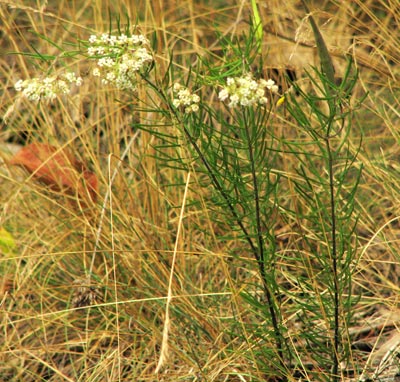 This milkweed is found in sand plain communities such as City Park. William W. Bailey mentions this plant in his book “Among RI Wildflowers” as growing in Buttonwoods. It has linear leaves arranged in whorls around the stem and white flowers which bloom in late July and August. The only population in City Park was destroyed by bulldozing in 2007.