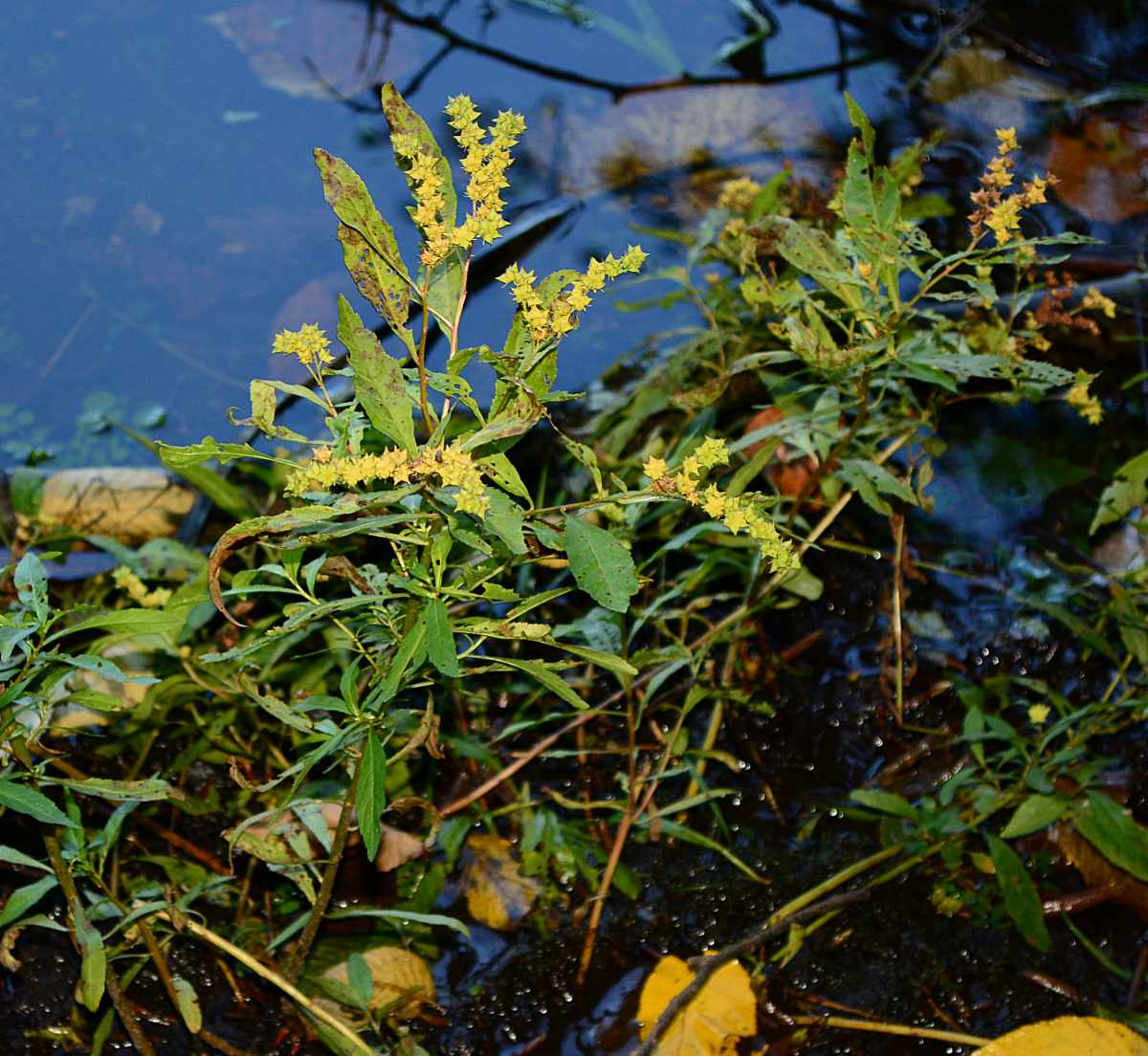 The mystery plant for October is listed as rare in RI. This plant can be found in wet or muddy habitats. It grows from 2” to 30” tall. It is a perennial with rhizomes. The leaves are alternate and toothed. The flowers have 5 sepals (usually no petals) and 5 carpels. The carpels turn red in the fall. It has been placed in its own family.