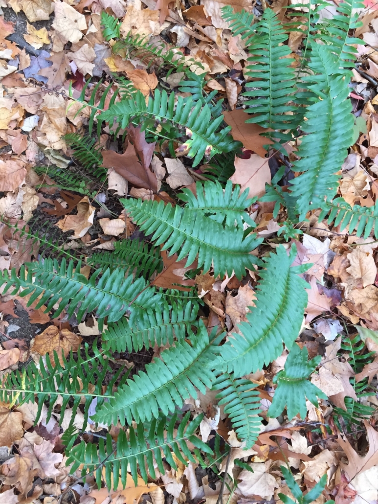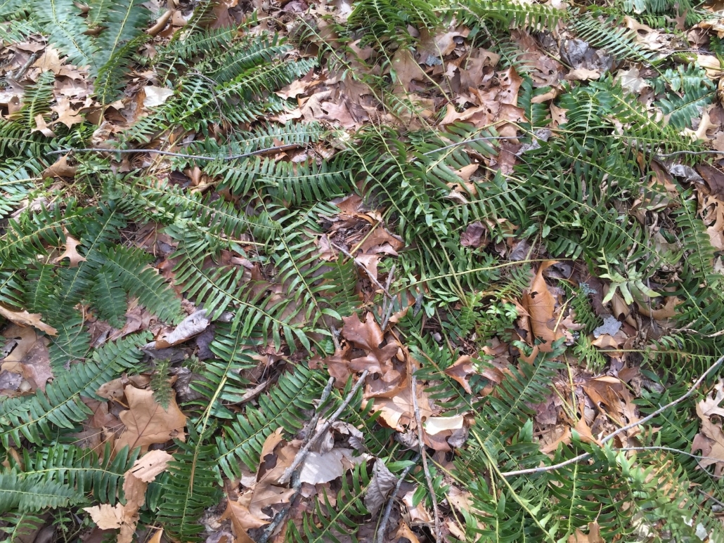 The December mystery plant differs from most other Mystery Plants in that it has no flowers. Instead of flowers it has spores produced on the underside of the frond. The fronds on this plant are evergreen, leathery and each plant forms a circular clump. The fronds are divided into leaflets called pinnae which are shaped like stockings. The stems may be covered with thick hair-like scales. This plant is found in woods and on rocky slopes. A winter favorite!