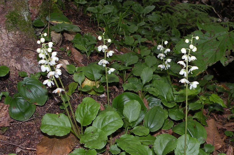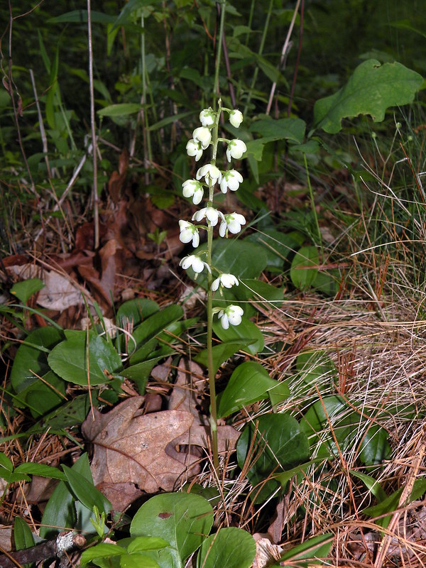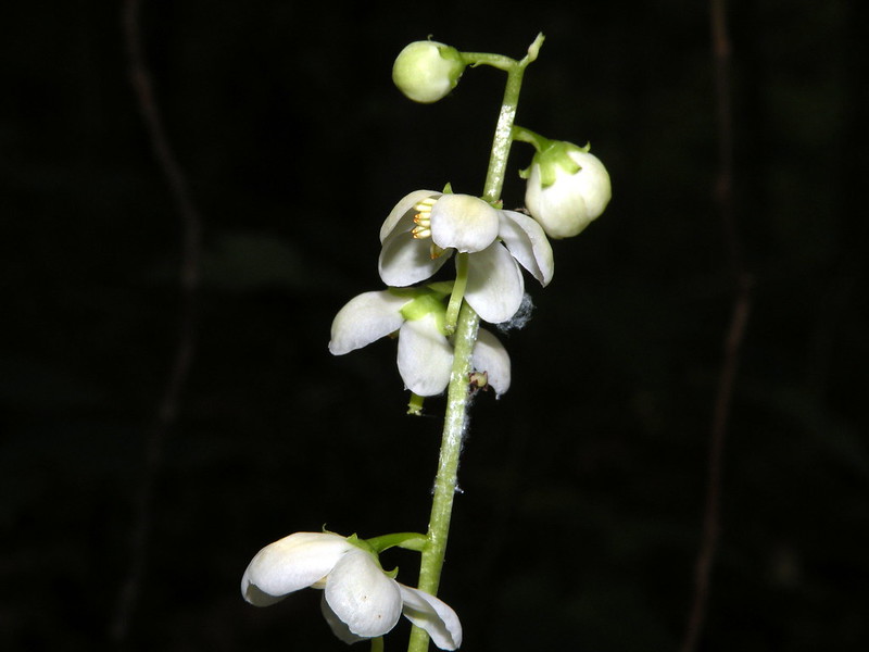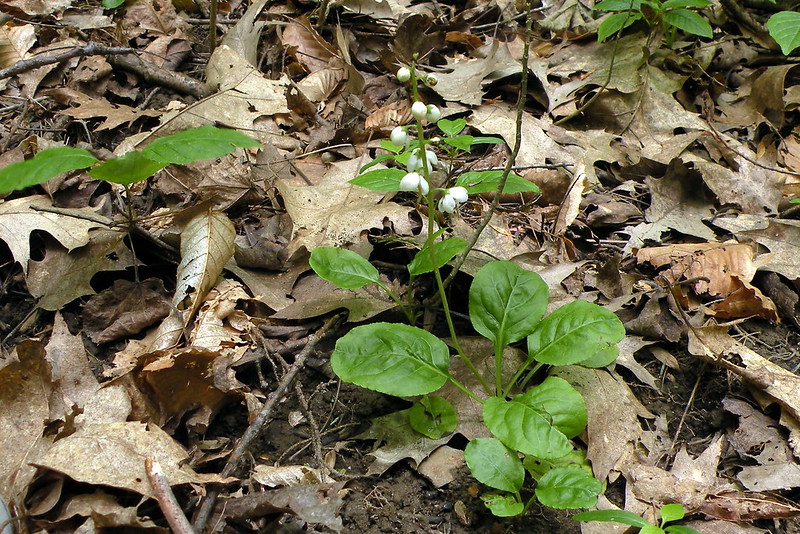 This month we have a fairly common woodland plant with only basal leaves. Each leaf measures 1-3 inches in length and is longer than wide, lightly toothed and longer than the leaf stalk. The 5-parted white flowers are visible in summer and rise 4 to 12 inches tall in a raceme. The style (pistil) of each flower protrudes noticeably from among the petals.