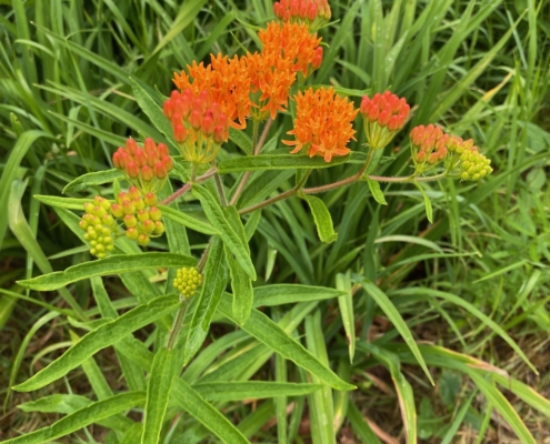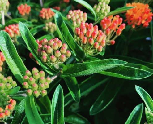 The October Mystery Plant is a striking orange-flowered native perennial. It is a popular garden ornamental and is easy to grow in sunny, well-drained locations. The flowers attract loads of wasps and bees. Broken stems and leaves exude a milky sap and the fruit is a dehiscent pod of silky seeds that blow away in the breeze.