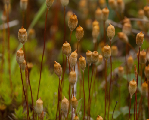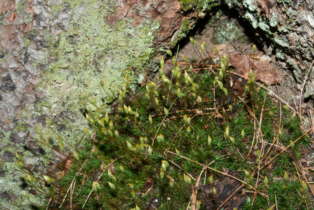 The October Mystery Plant is switch-up in that it is a plant – but not a vascular plant. This common woodland plant grows on soil in clumps of short upright stems clothed with pointed laminate leaves. The fruiting capsules arise on stems called “seta” and initially are covered by a hairy “cap” or calyptra. As opposed to higher plants the plant is a gametophyte (“spore plant”) and the “fruit” is a sporophyte (“vegetative plant”). Very different! But you see this literally everywhere, it is lovely, and should know it by heart.