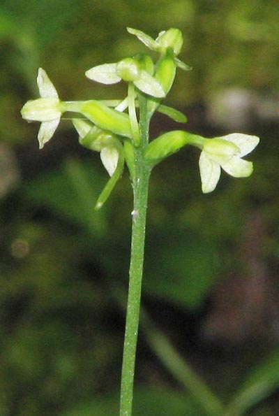 Comments: A very small orchid which blooms from mid-July to August Flowers are whitish-green.