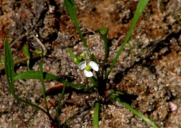 Comments: This small plant has white flowers with three petals and long narrow leaves.