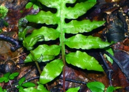 Comments: An evergreen fern with large sterile leaves at bottom of vine and small fertile leaves at the top. It climbs on twigs and branches.